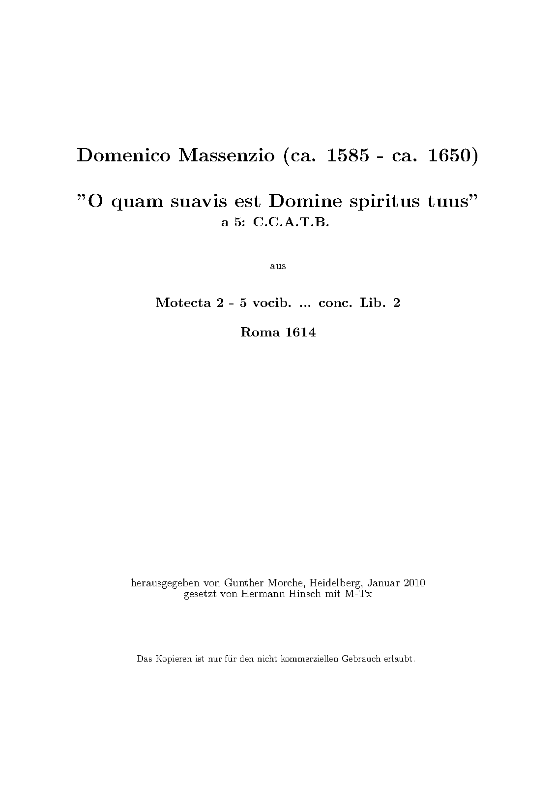 | Work Title | O quam suavis est Domine spiritus tuus |
