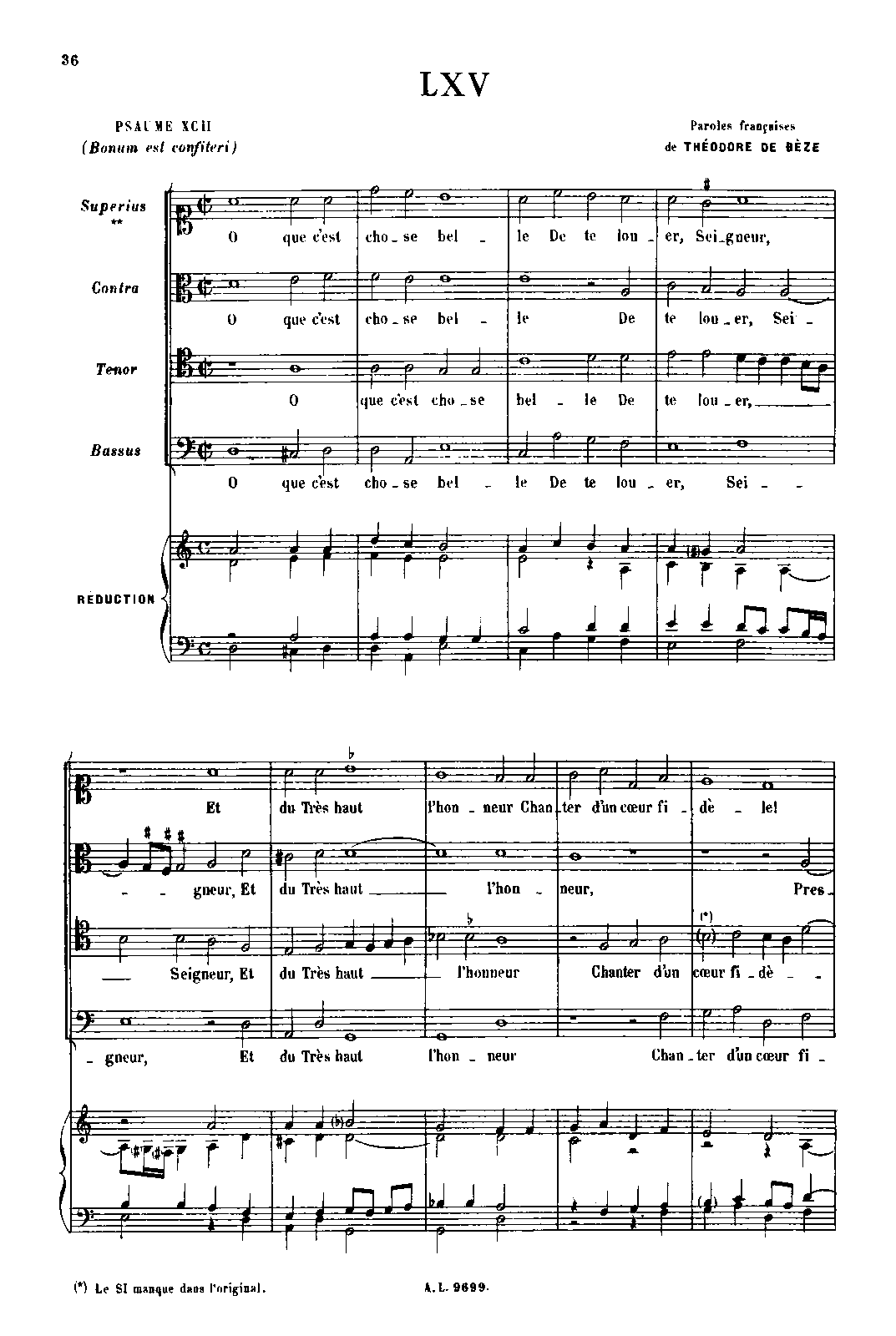 First Publication. 1568 in 150 Pseaumes de David (No.65)