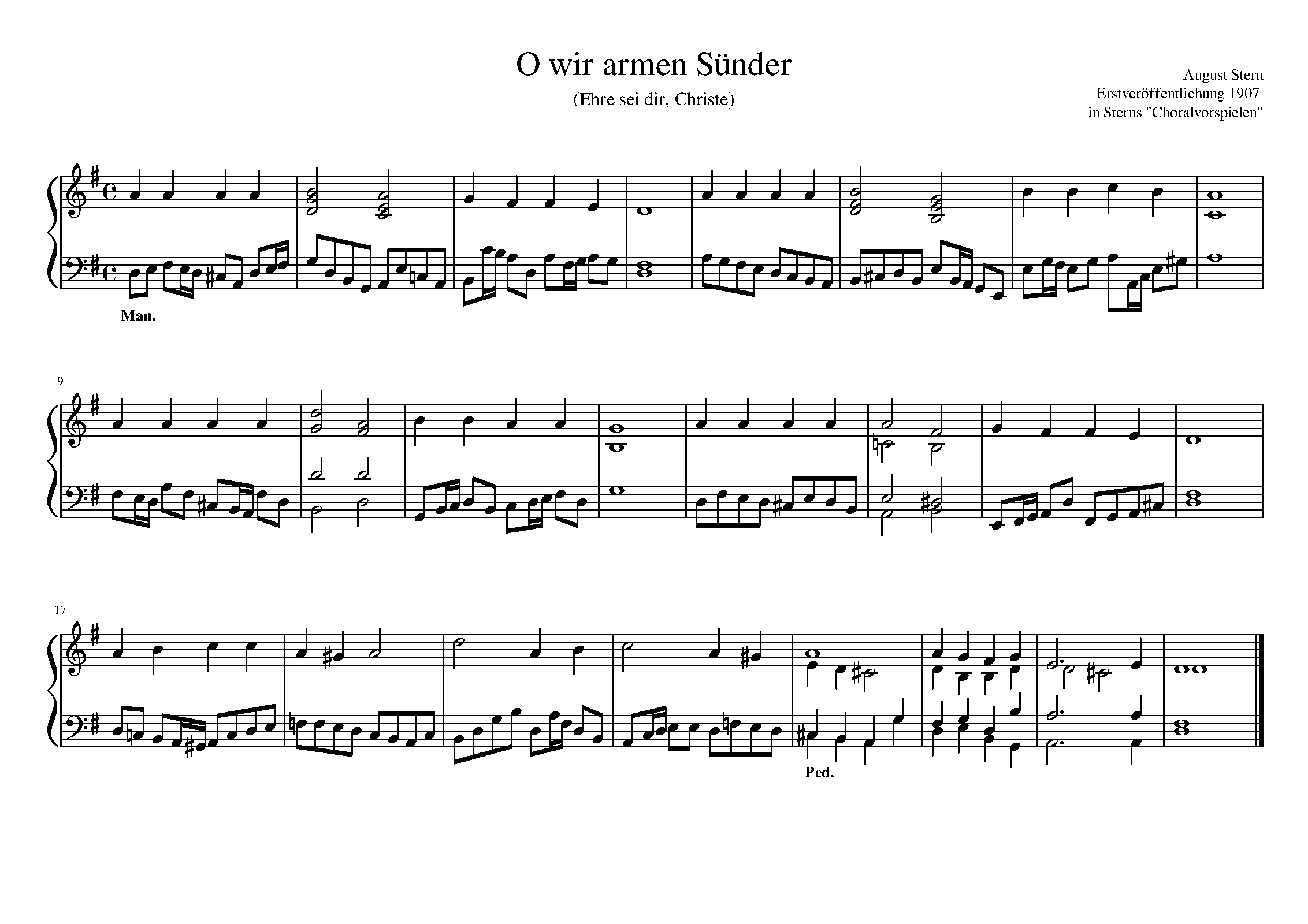 In August Stern's collection of chorale preludes this piece is attributed to "A. St.". No other piece by this person and no other composer with these initials is featured in the collection. One has to assume Stern humbly did not put his full name there (nor in the index of the collection).