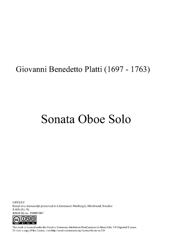 | Work Title | Sonata Oboe Solo Dell Sing.r Plati. |