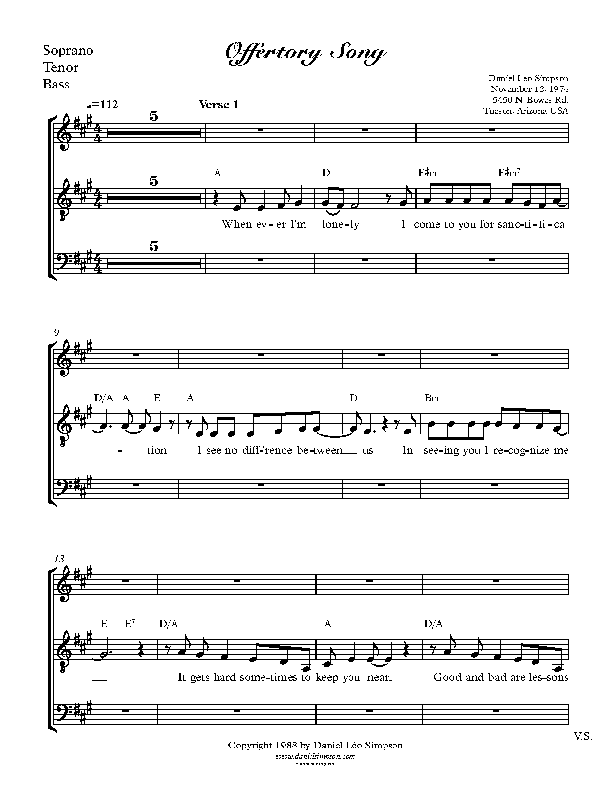 | Instrumentation | Vocals (Soprano, Tenor, Baritone/Bass); Acoustic Guitars 1, 2, 3; Piano; Electric Bass; Drums |