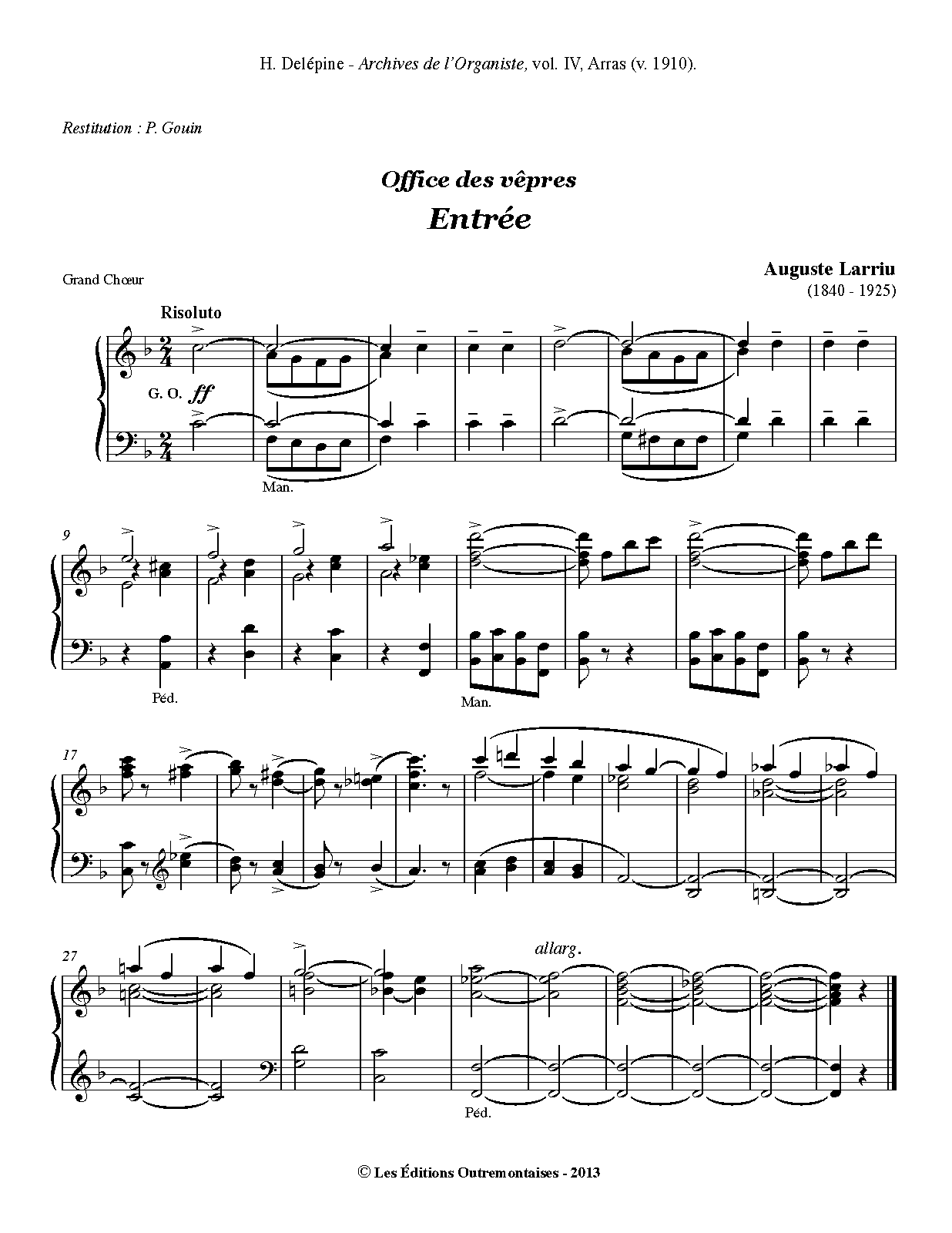 From: Henri Delépine - Archives de l’Organiste, vol. IV, Arras (v. 1910).
