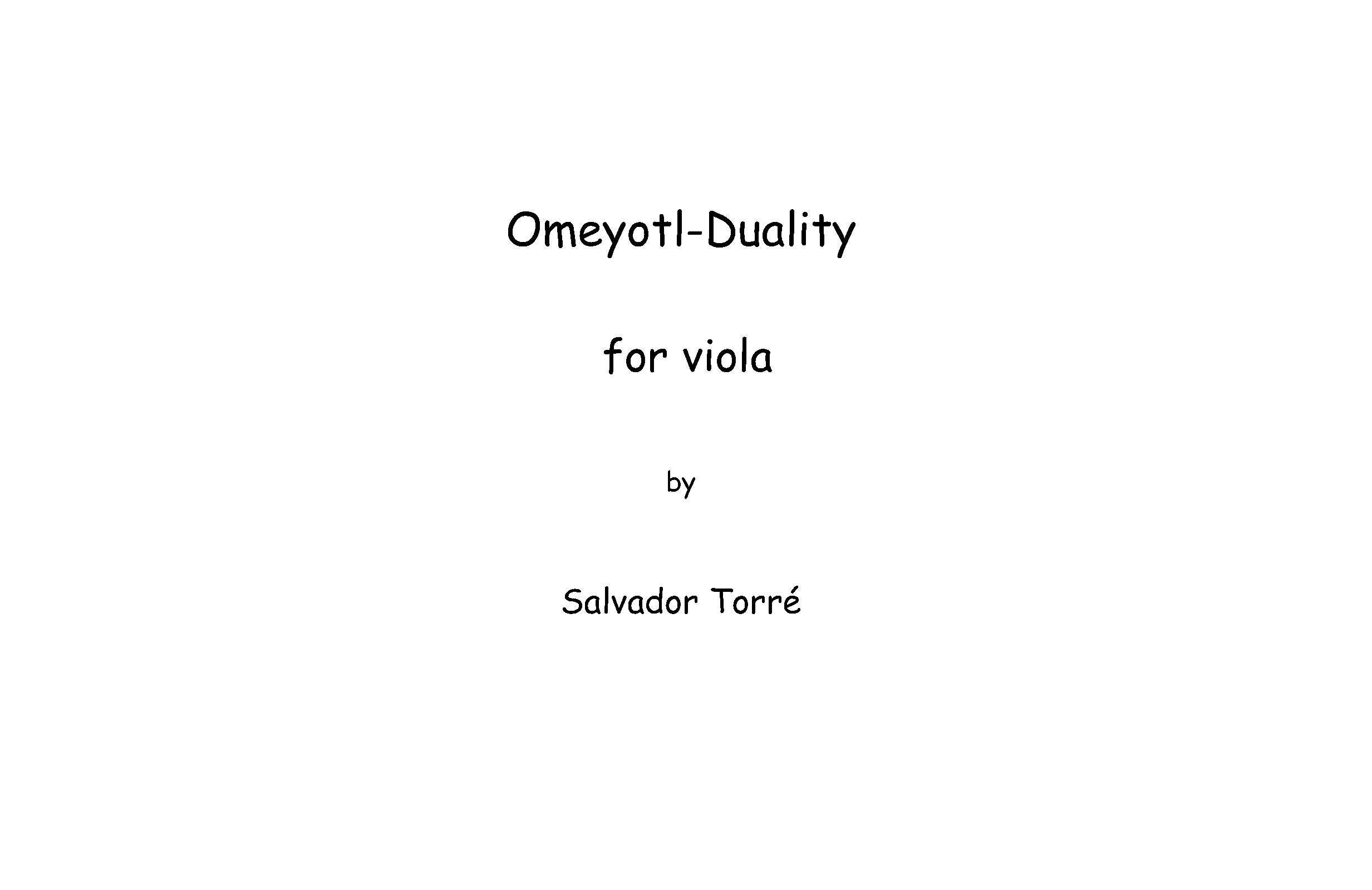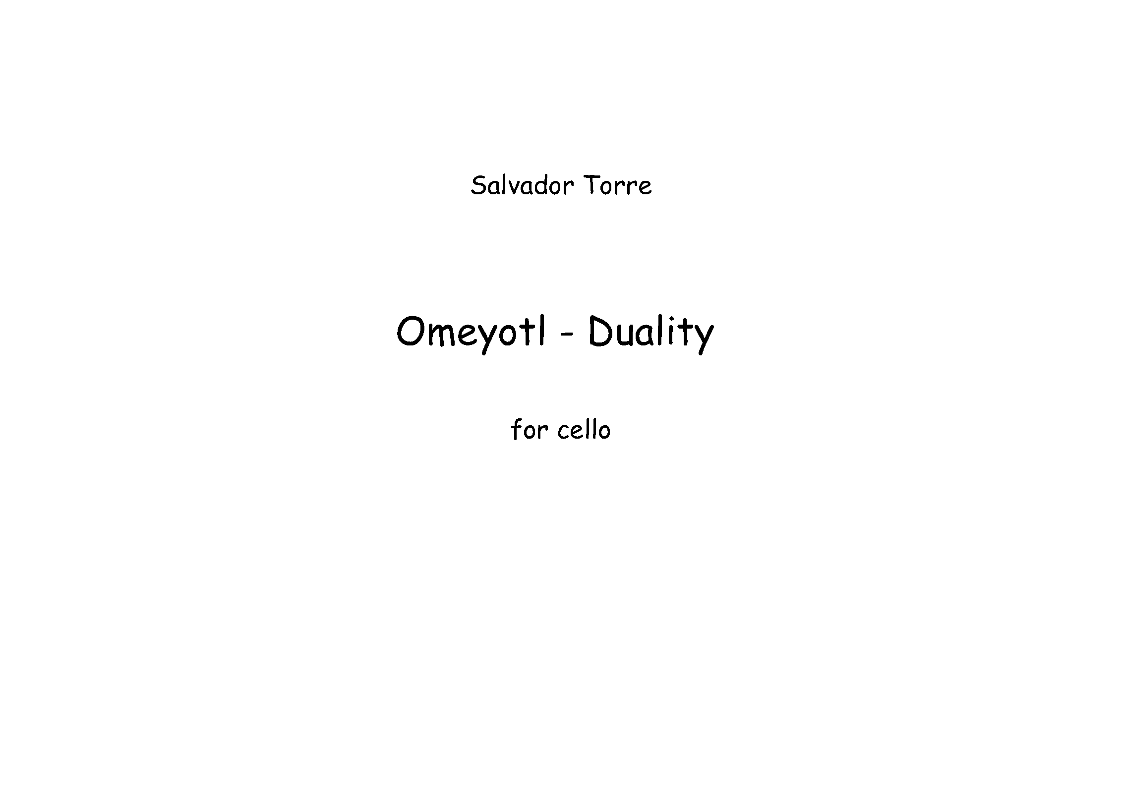 OMEYOTL-DUALITY surge de la mitología mesoamericana y es el principio de dualidad. Que está en el treceno cielo. Los antiguos mexicanos consideraban que había 9 capas del inframundo y 13 capas en dirección del cielo, en la última capa o número 13 se encuentra el lugar de la dualidad: Ome ¨dos¨, lugar de la dualidad, espejo de la noche y el día, madre y padre de los dioses y de los hombres, dador de la vida… es éste el principio supremo… se encuentra en el treceno cielo. La dualidad está creada aquí por la disposición conjunta de los elementos más discimbolos; 13 versus uno. La pieza comprende 13 ciclos o estratos que son trece modos de tocar el instrumento (tr., trem., gliss., jetée, etc. ) * compuestos de 6 segmentos encontrados entre sí, de 1,2,3,5,8 y 13 tiempos ( = 32 = secc. áurea de 52), las relaciones de la pieza obedecen a estas mismas proporciones, interválicamente, rítmicamente, cada cuerda en particular, microtonalmente, etc.