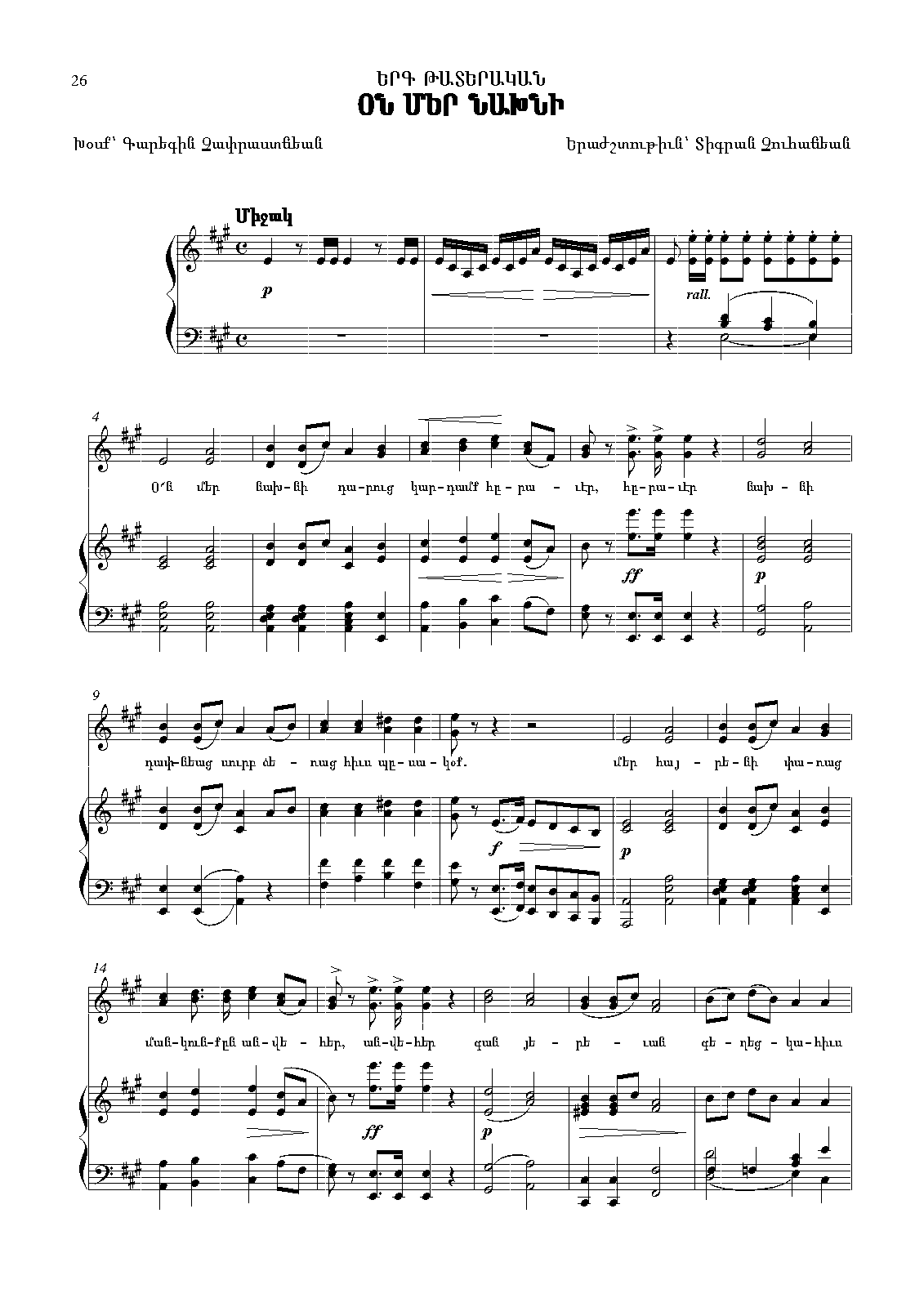 | Alternative. Title | Օն մեր նախնի, Երգ թատերական, Chanson de théâtre |