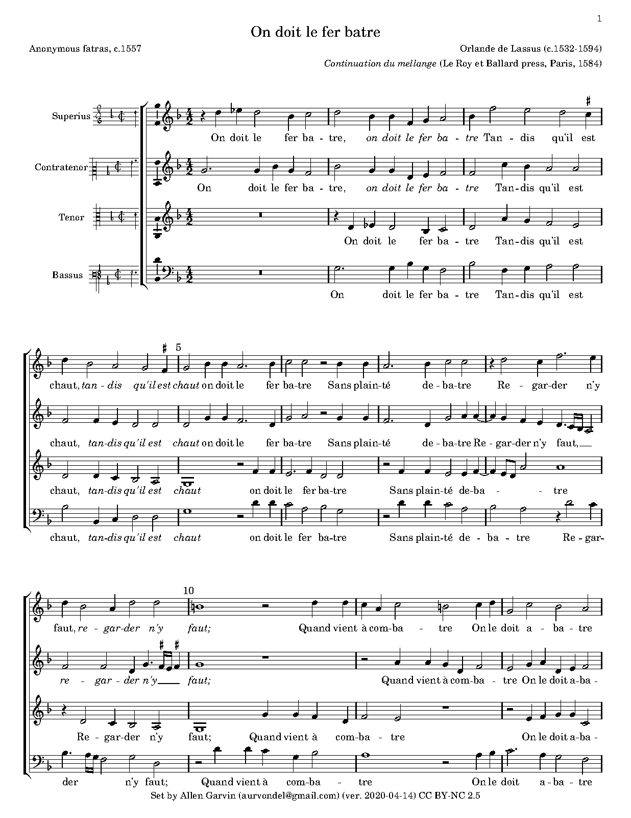 1584 in Continuation du mellange (Le Roy et Ballard press, Paris)