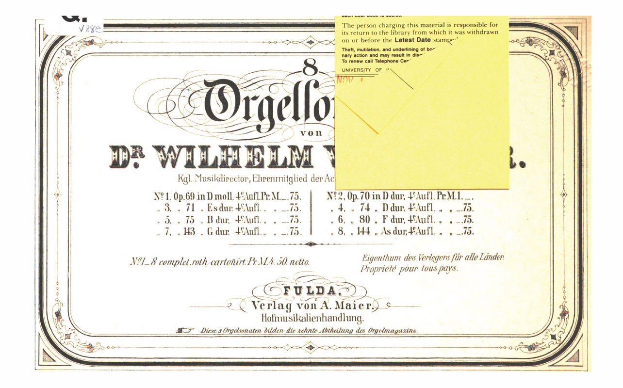 | Genre Categories | Sonatas; For organ; Scores featuring the organ; For 1 player |