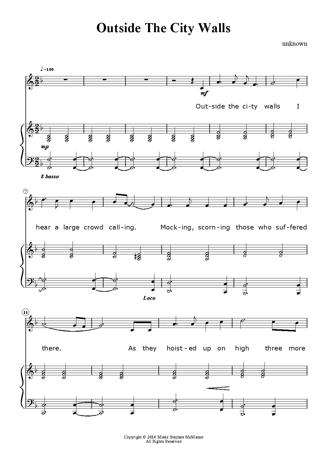 The song is set for solo unaccompanied voice. I have, however, included a simple accompaniment which details the harmonic progressions. This can be made more elaborate if desired.