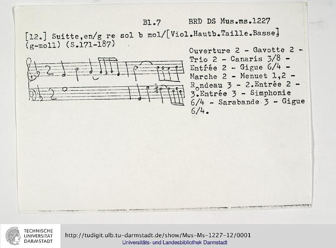 The typed cover page says "Viol.Hautb.Taille.Bass", but the actual manuscript has no indication of instruments, so that was the library's decision as to instrumentation. Therefore, this has been tagged for both strings and orchestra (with winds).