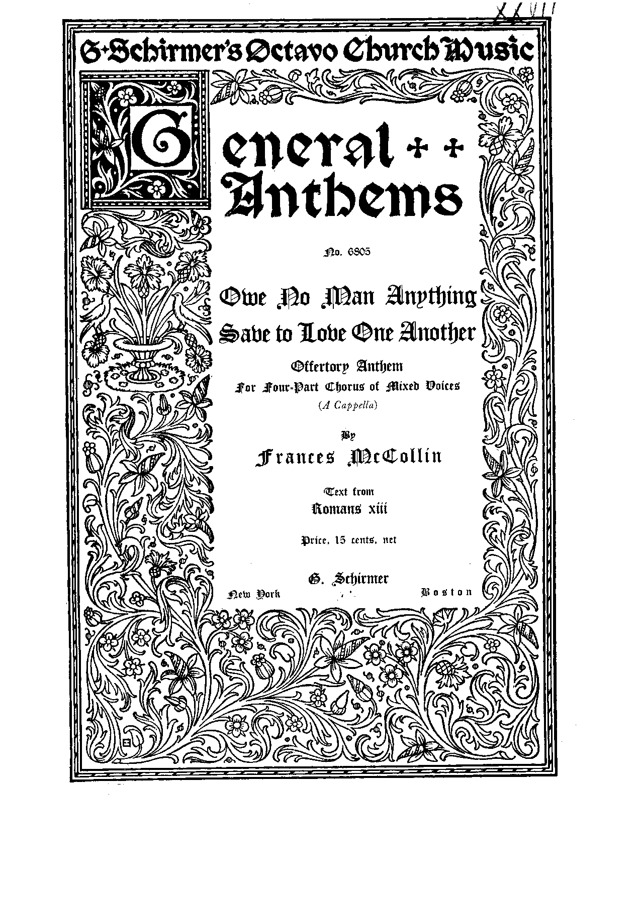 | Work Title | Owe No Man Anything Save to Love One Another |