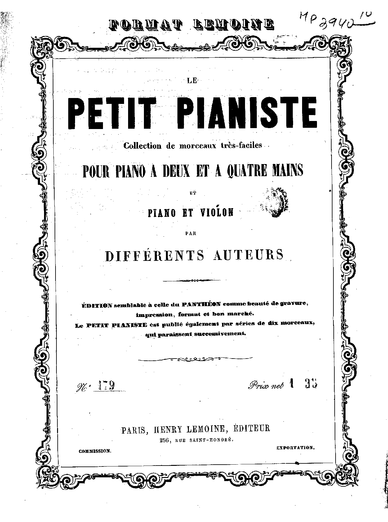 | Alternative. Title | 1er. trio pour piano, violon et violoncelle |