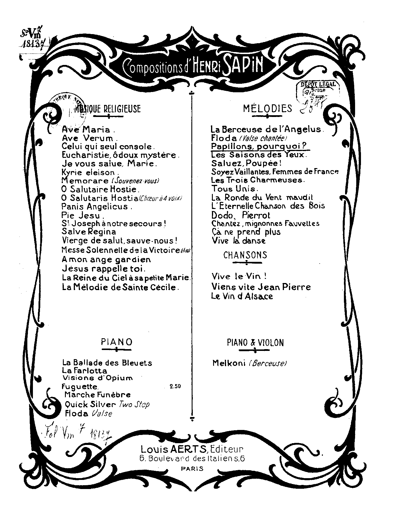 | Composer | Sapin, Henri |