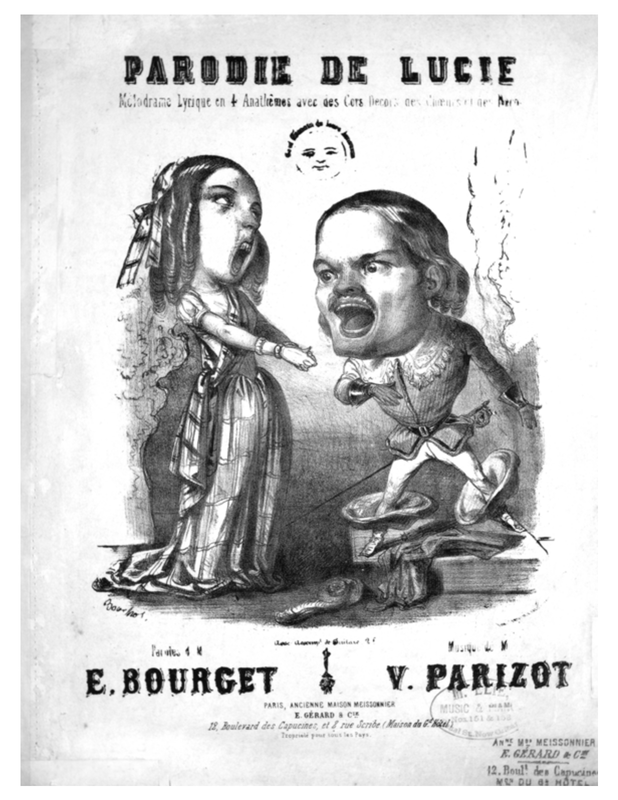 | Alternative. Title | Mélodrame lyrique en 4 Anathèmes avec des Cors des décors des chœurs et des recors ; Mélodrame lyrique en 4 Actes ; "Parodie de "Lucie de Lammermoor"" ; Lucie ou la fiancée de la mère Moreau, mélodrame lyrique en 4 anathèmes (1850 title) |