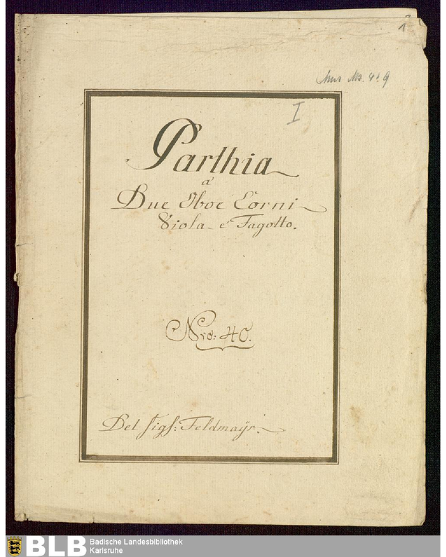| Genre Categories | Partitas; For 2 oboes, bassoon, 2 horns, viola; Scores featuring the oboe; |