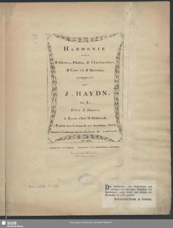 | Genre Categories | Partitas; For 2 oboes, 2 clarinets, 2 bassoons, 2 horns; Scores featuring the oboe; |