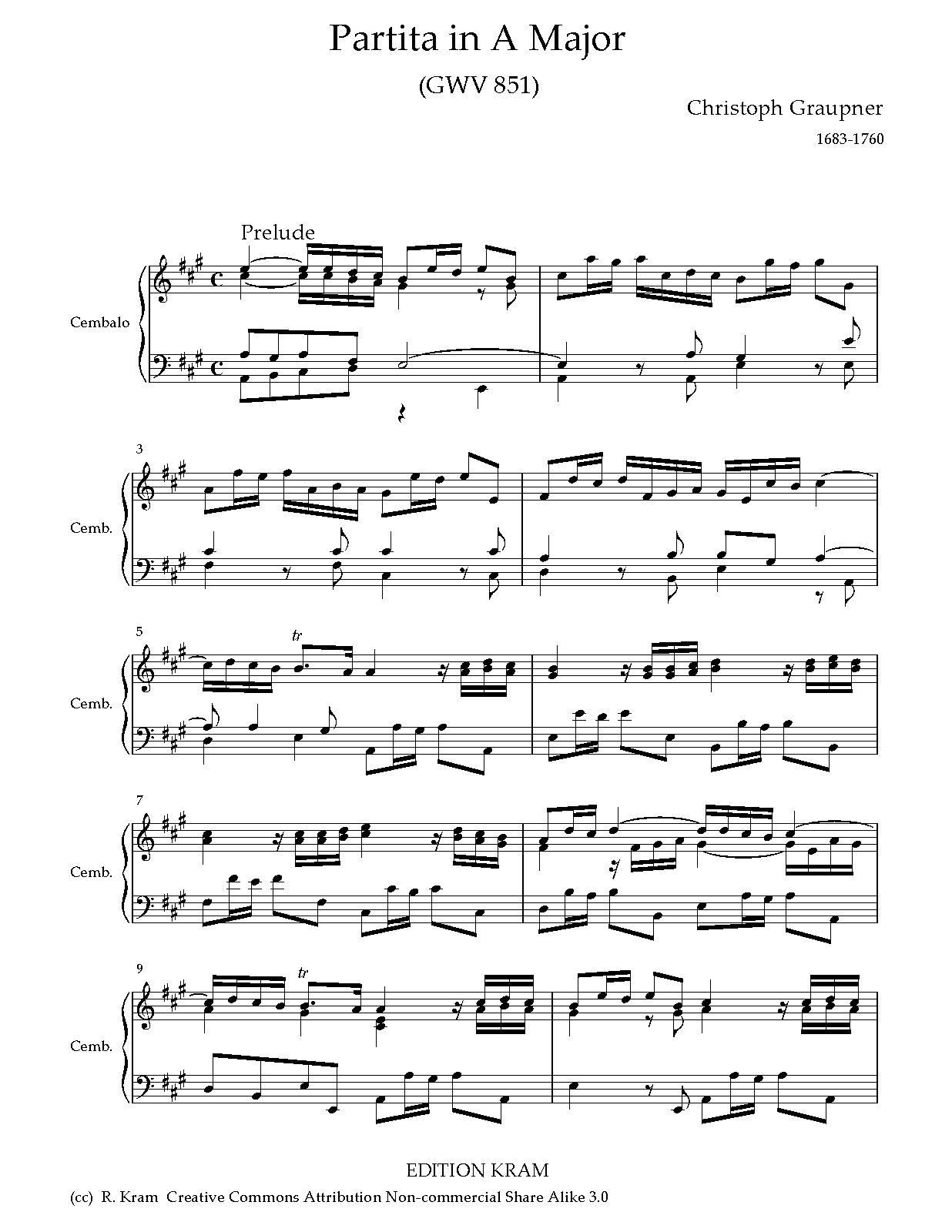 | Work Title | Partita in A major, GWV 851 |