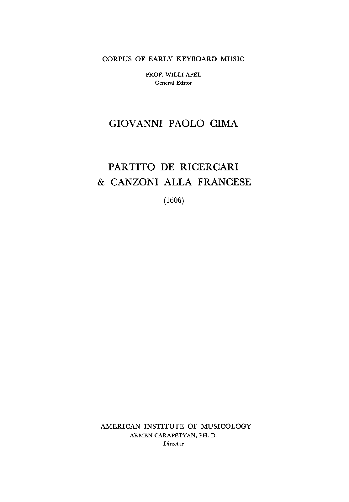Partito de ricercari & Canzoni alla francese (Cima, Giovanni Paolo)