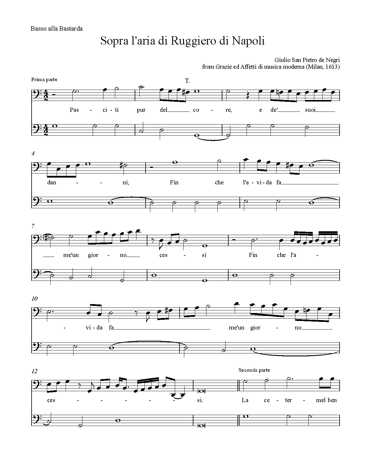 | Instrumentation | basso alla bastarda (voice), continuo |