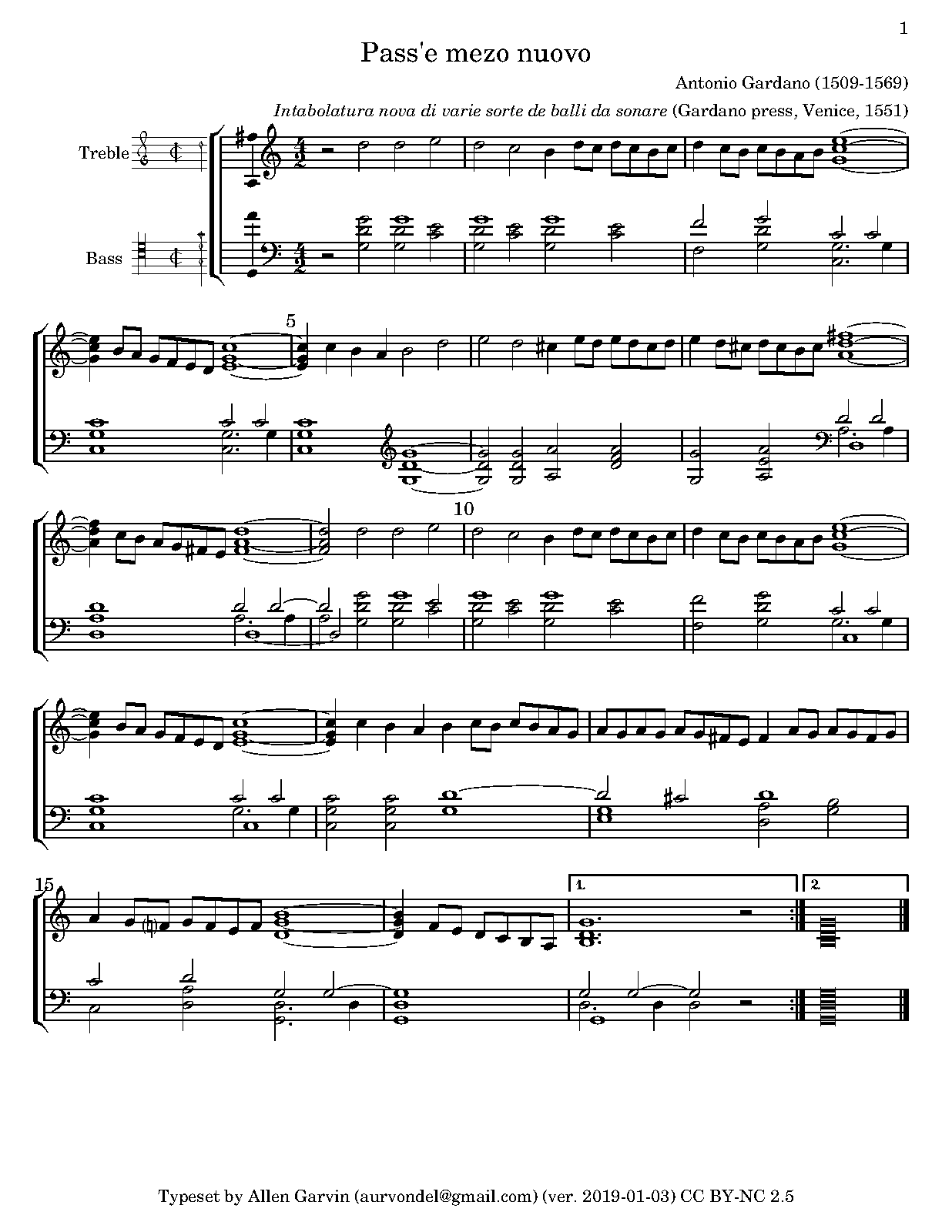| First Publication | 1551 in Intabolatura nova di varie sorte de balli da sonare (Gardano press, Venice) |