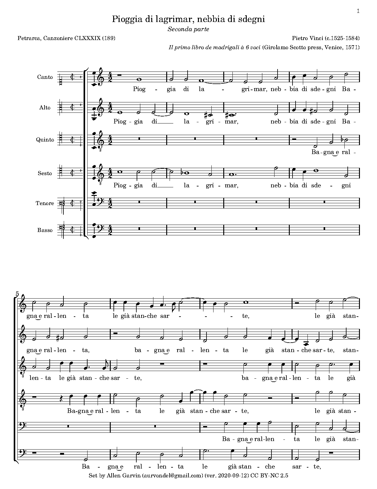 | First Publication | 1571 in Il primo libro de madrigali a 6 voci (Girolamo Scotto press, Venice) |