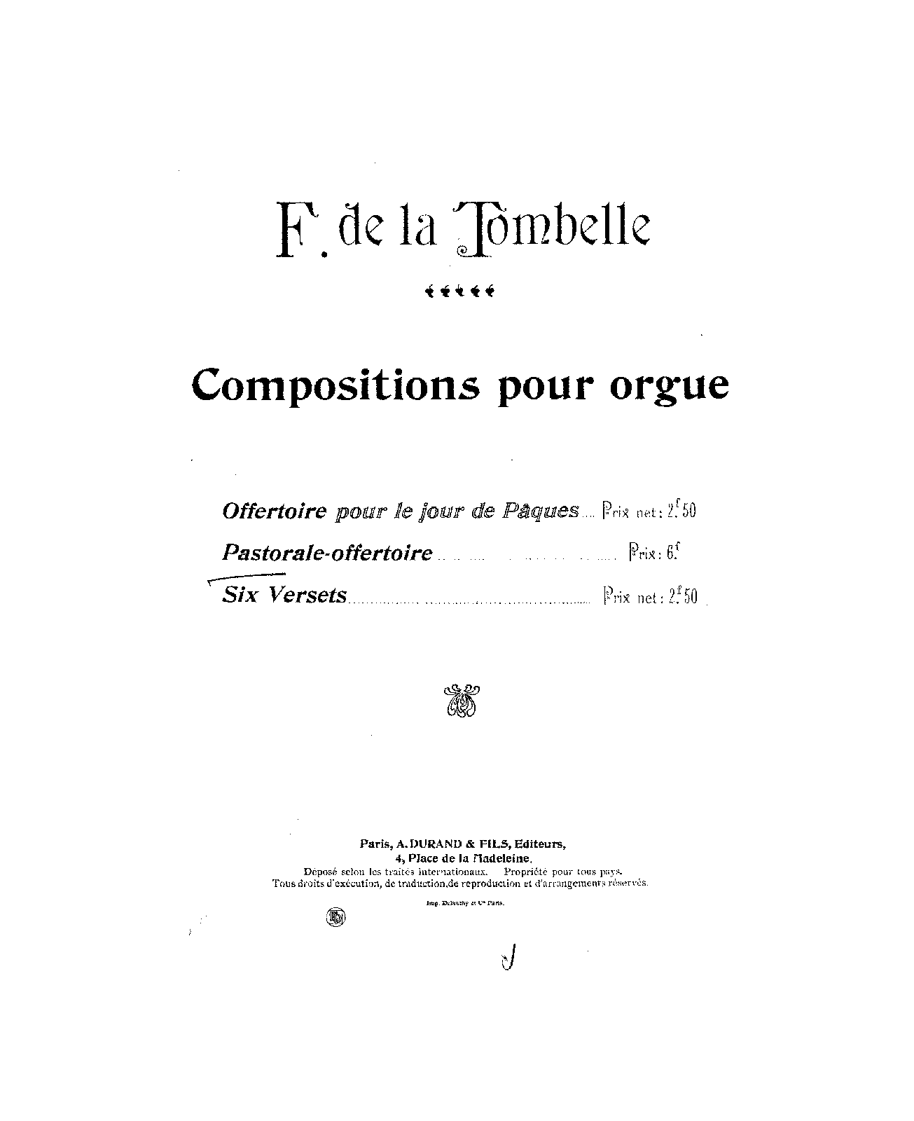 | Genre Categories | Pastorales; Offertories; For organ; |