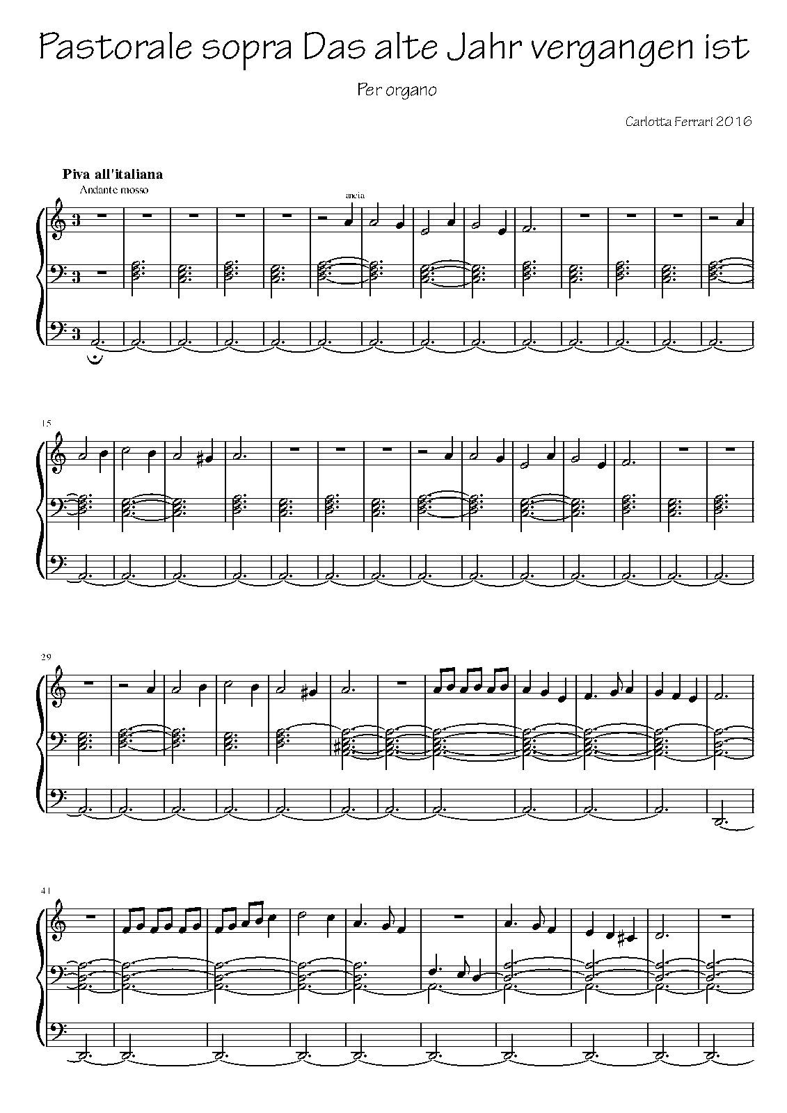 | Work Title | Pastorale sopra Das alte Jahr vergangen ist |