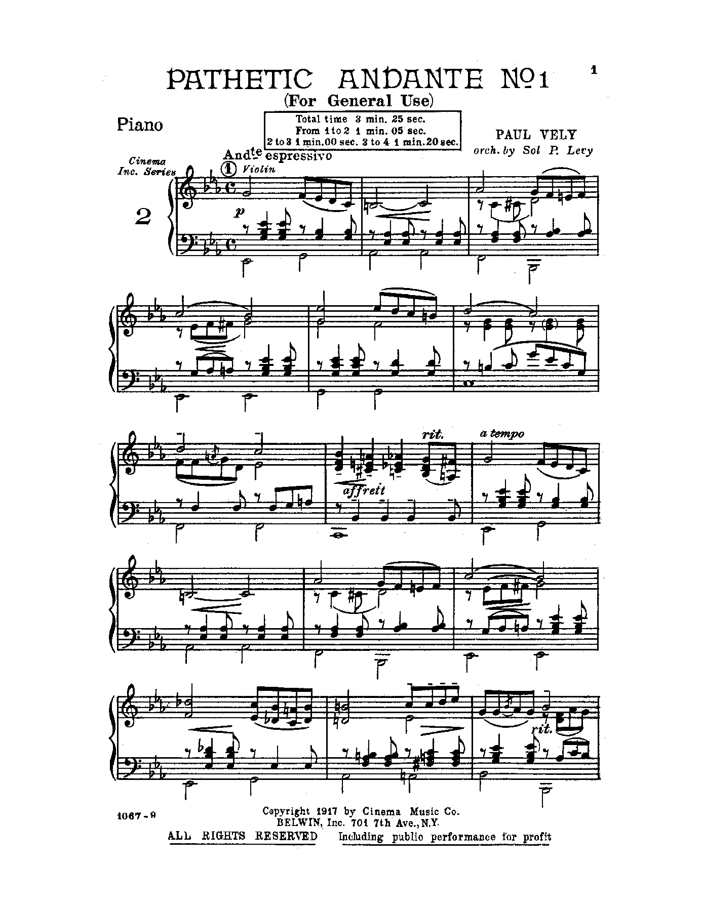 | Extra Information | Intended for use as accompaniment for silent movies. Published under the pseudonym Paul Vely. |