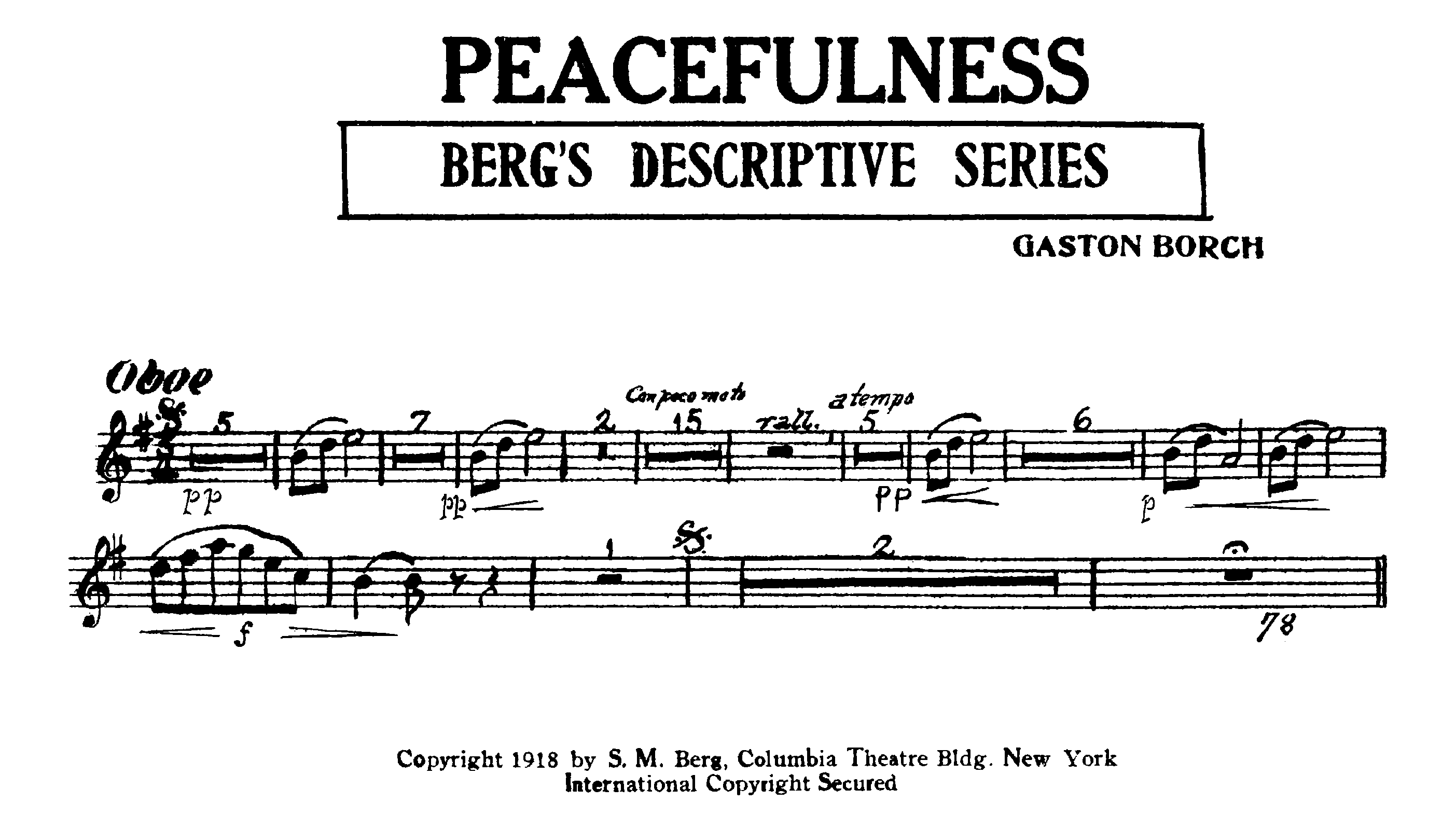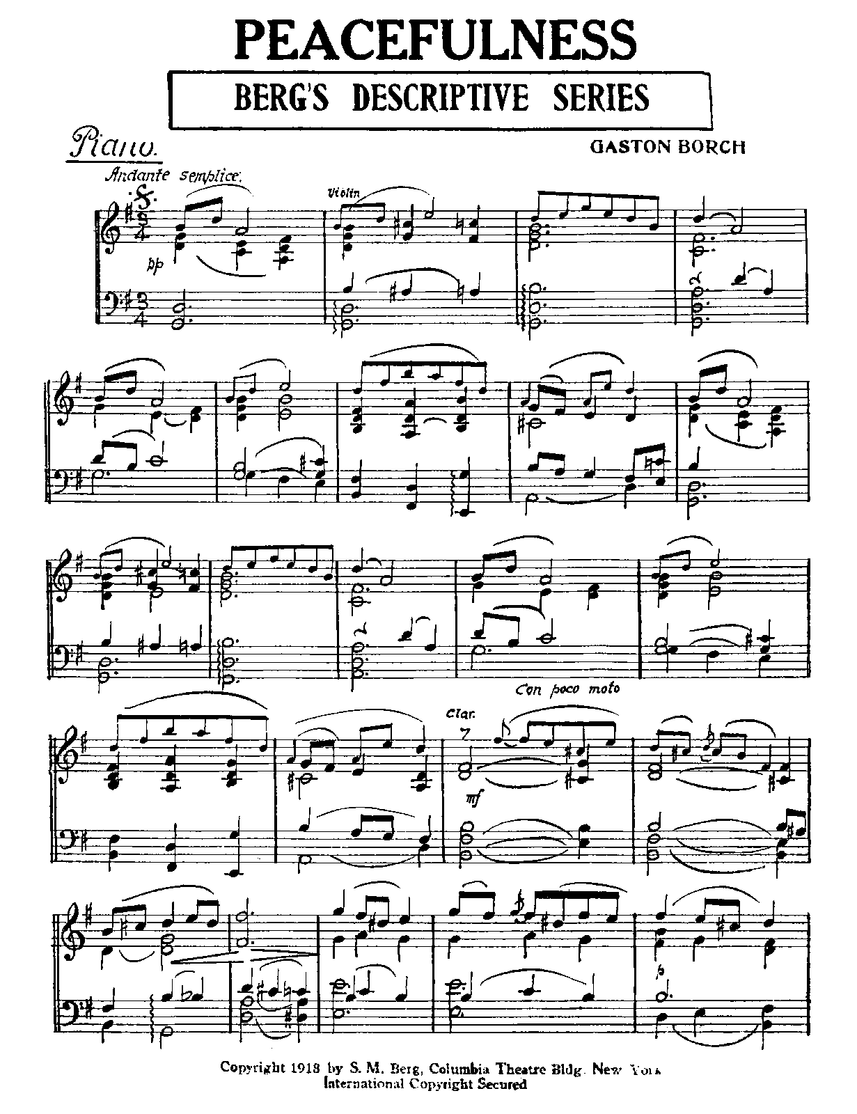 Berg's Descriptive Series, No.2 New York: S.M. Berg, 1918. Re-engraving: New York: Belwin, Inc., n.d. Plate B.D.S. No.2.