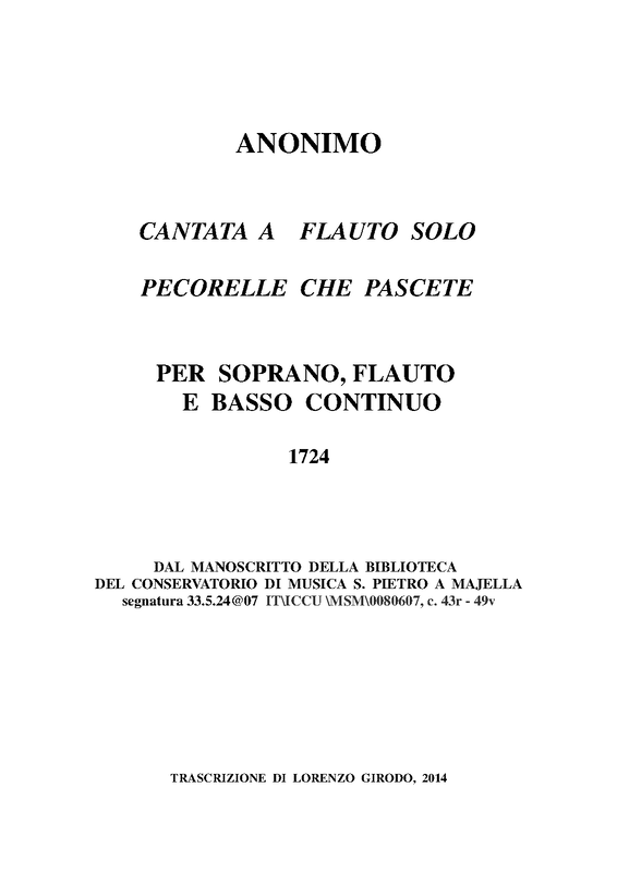 | Instrumentation | soprano, continuo ; soprano, flute, continuo |