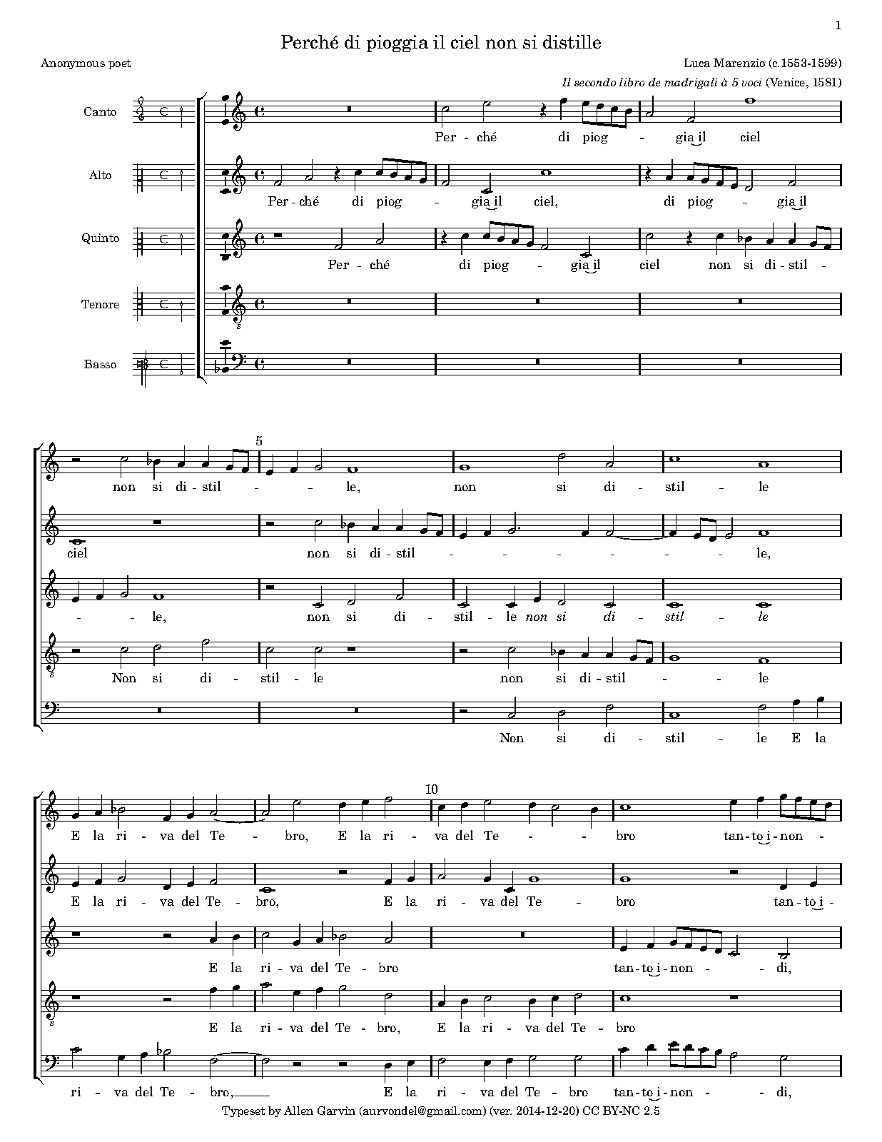 | First Publication | 1581 in Madrigali a 5 voci, Libro 2 (No.2) |