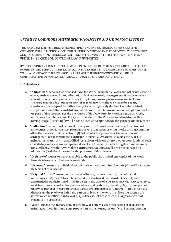 Creative Commons Attribution-NoDerivs (CC-BY-ND) 3.0 Unported