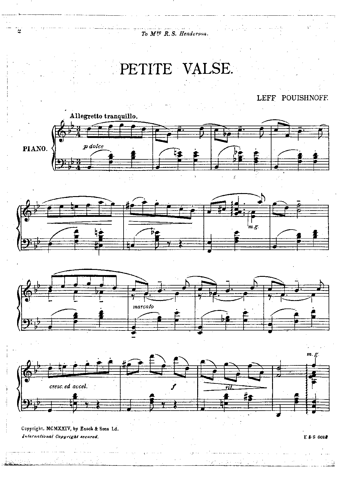 Publisher. Info. London: Enoch & Sons, 1924. Plate E. & S. 6012.