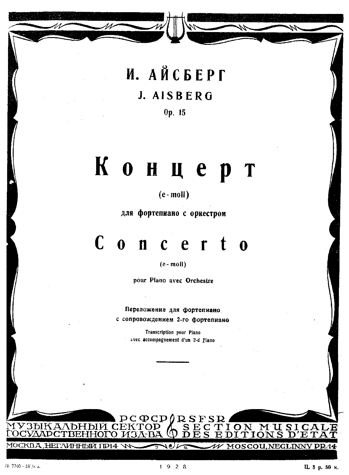 | First Publication | 1928 - Moscow: Gosudarstvennoe Izdatel'stvo Muzykal'nyi Sektor |