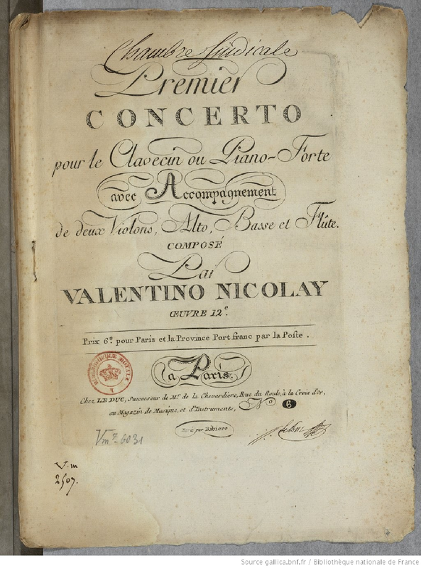 | Alternative. Title | Premier Concerto pour le Clavecin ou Piano-Forte avec Accompagnement de deux Violons, Alto, Basse et Flute |