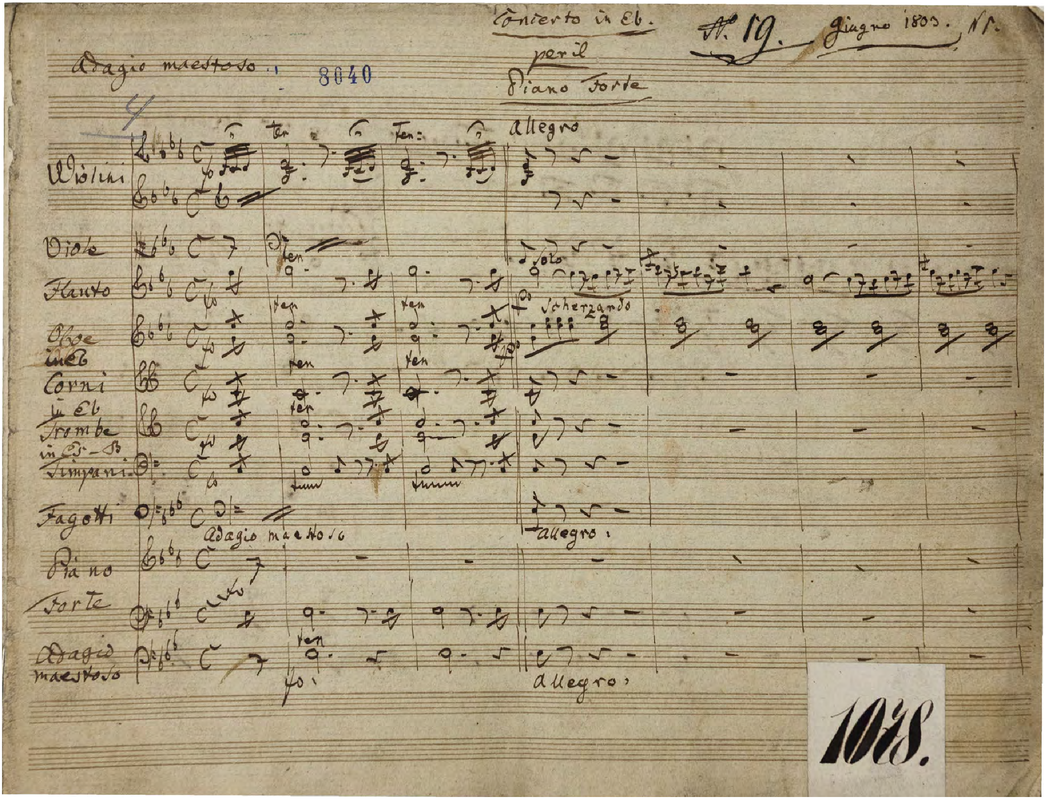 Solo: piano Orchestra: flute, 2 oboes, 2 bassoons, 2 horns, 2 trumpets, kettledrum, strings