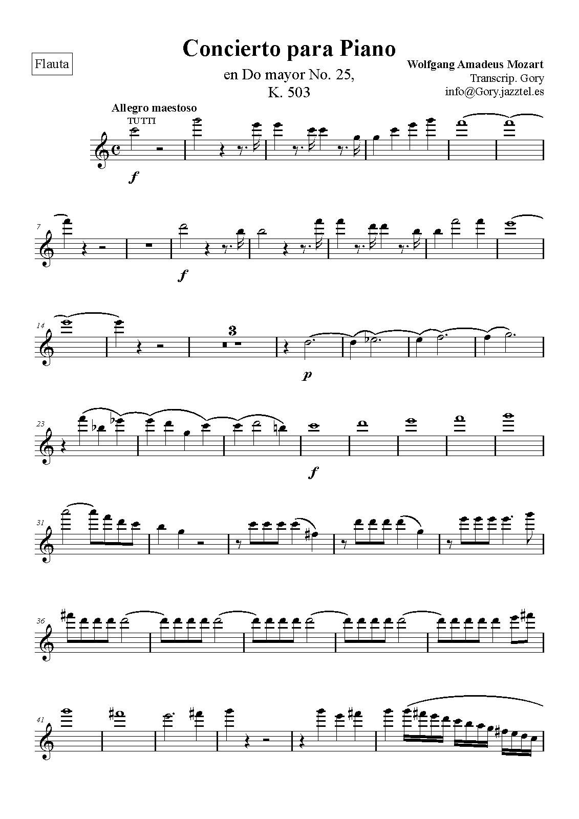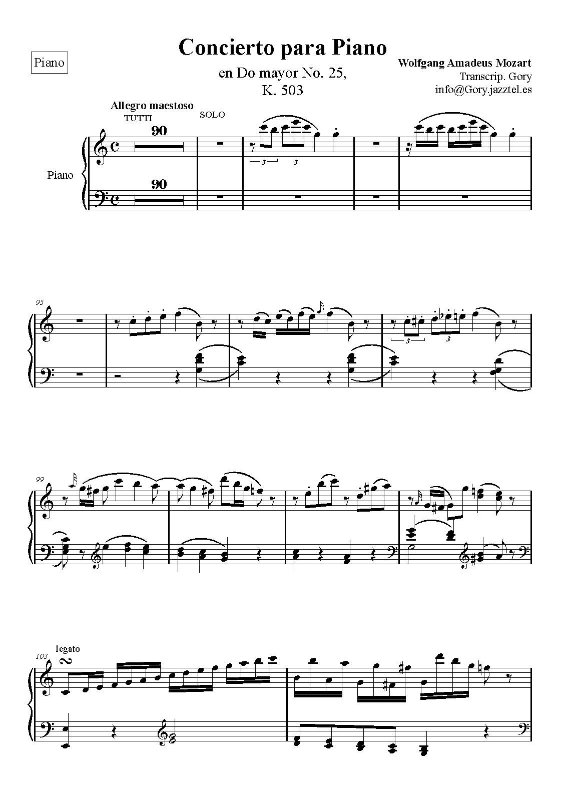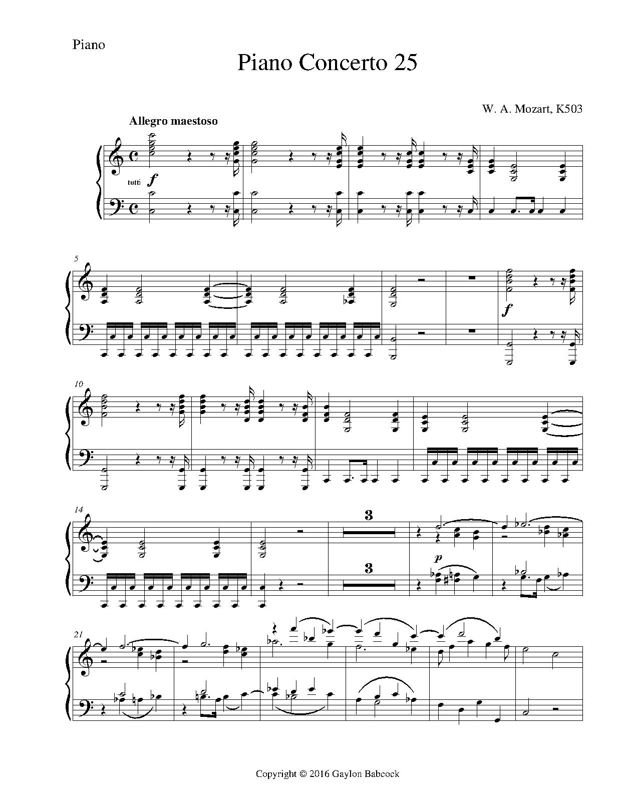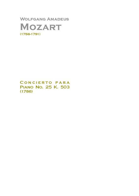 Name Aliases Piano Concerto No. 25; Piano Concerto in C major; Klavierkonzert Nr. 25; Klavierkonzert C-Dur; Klavierkonzert in C-Dur; Pianoconcert nr. 25 (Mozart); C-dúr zongoraverseny K. 503