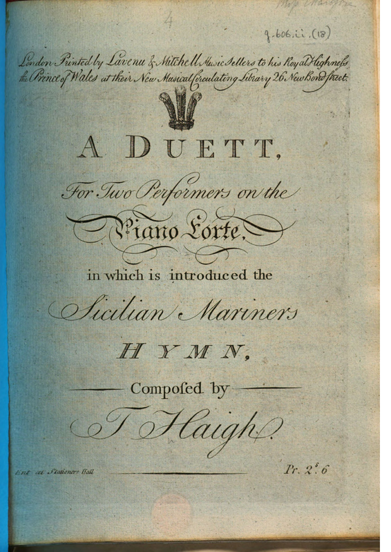 | Alternative. Title | A Duett for Two Performers on the Piano Forte, in which is introduced the Sicilian Mariners Hymn |