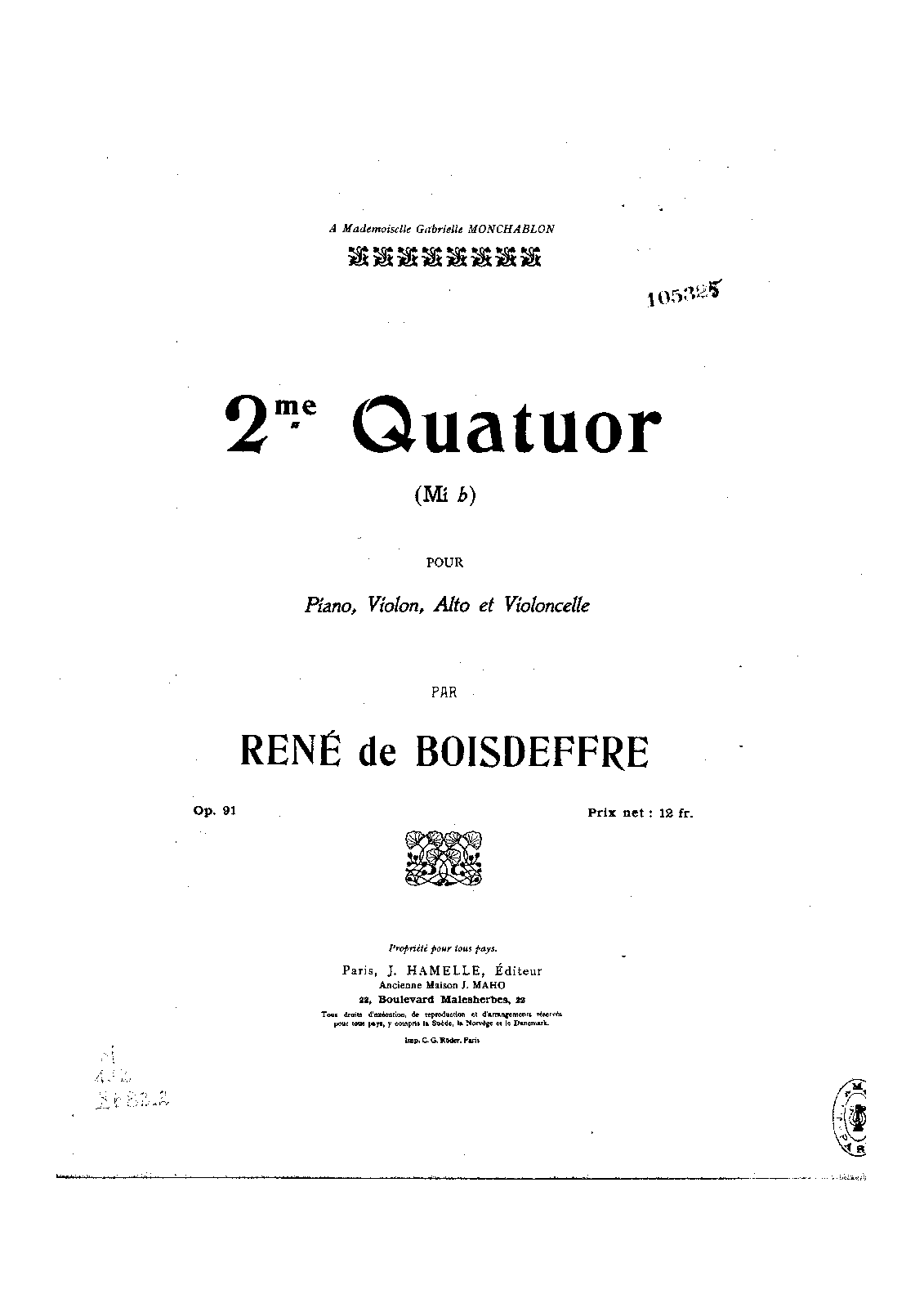 | Genre Categories | Quartets; For violin, viola, cello, piano; Scores featuring the violin; |