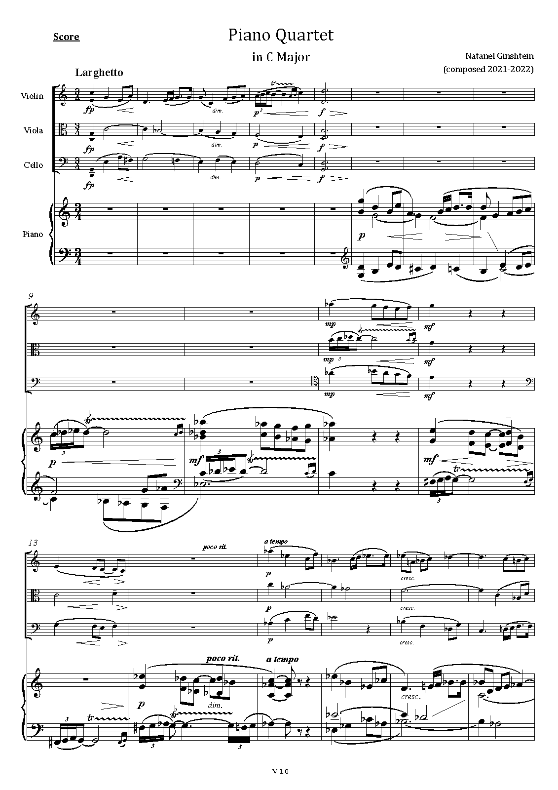 | Genre Categories | Quartets; For violin, viola, cello, piano; Scores featuring the violin; |