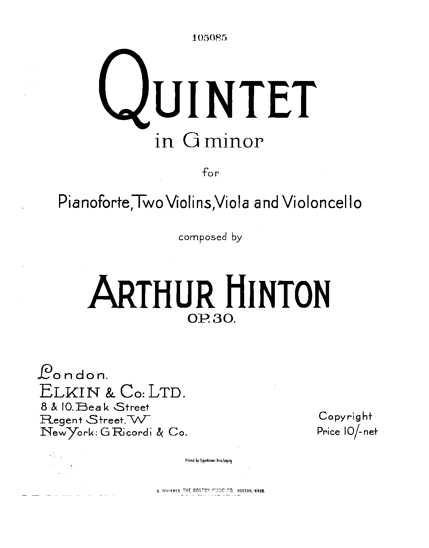 | Genre Categories | Quintets; For 2 violins, viola, cello, piano; Scores featuring the violin; |