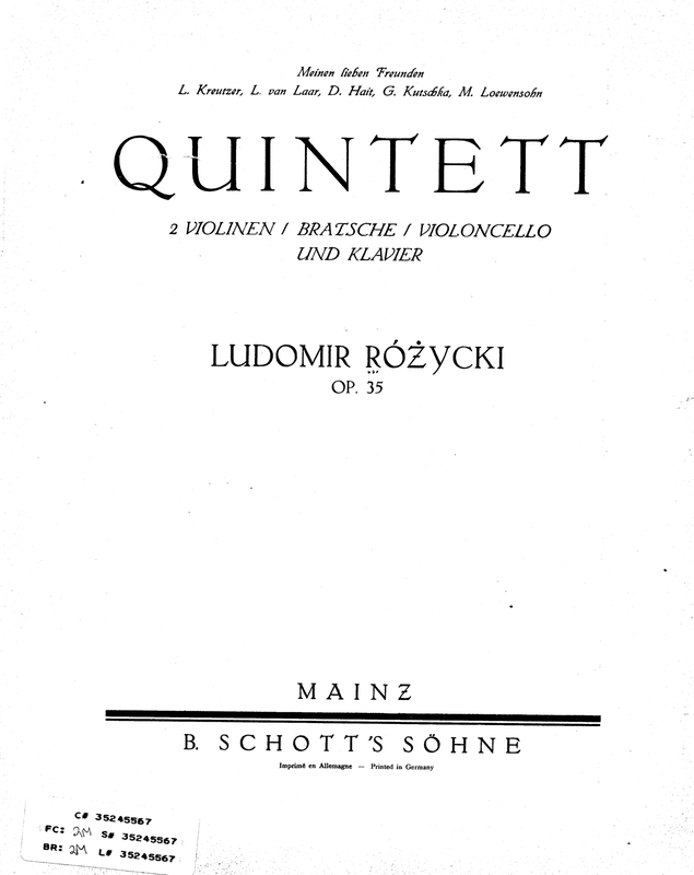 | Genre Categories | Quintets; For 2 violins, viola, cello, piano; Scores featuring the violin; |