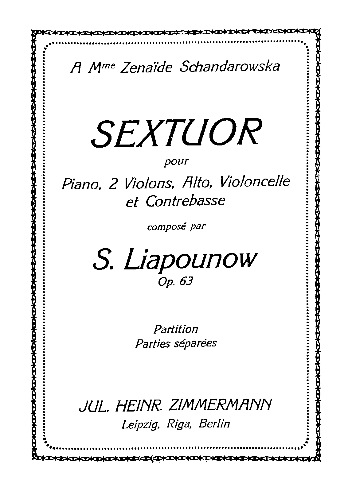 Sextuor, Op. 63; Секстет для фортепиано, двух скрипок, альта, виолончели и контрабаса, соч. 63