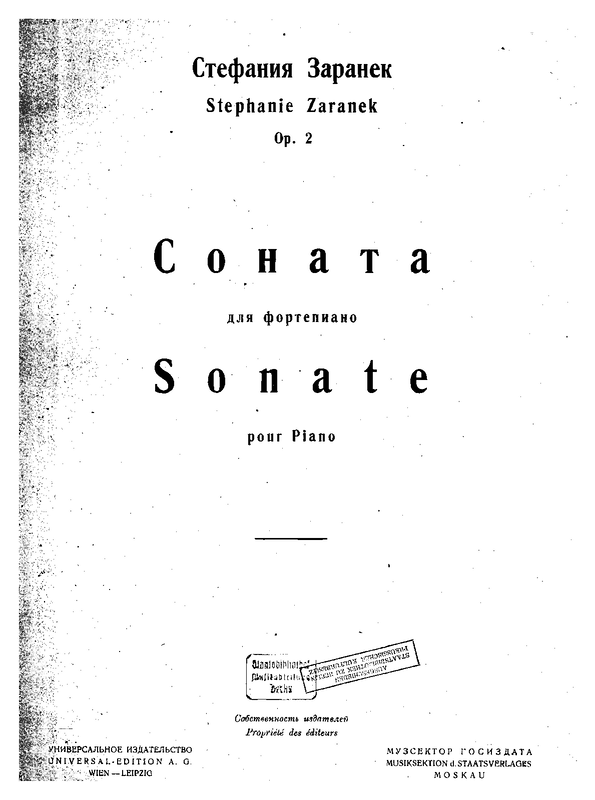 Piano Sonata, Op.2 (Zaranek, Stefaniya)