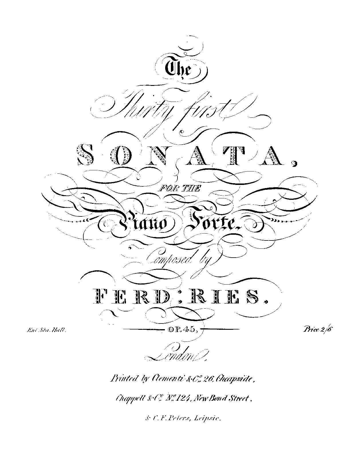 Publication date confirmed in Cecil Hill, Ferdinand Ries: A Thematic Catalogue. 1813 Kühnel edition mentioned in AMZ but has not been located; the 1817 Clementi edition is the earliest still-existing print.