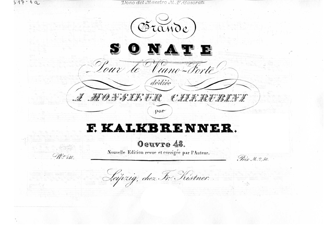 Possibly part of a complete collection of Kalkbrenner's piano works to date that were released in a "corrected edition" published by Probst before 1829 (and then reprinted post-1835, hence the "Fr. Kistner" on the frontispiece.)