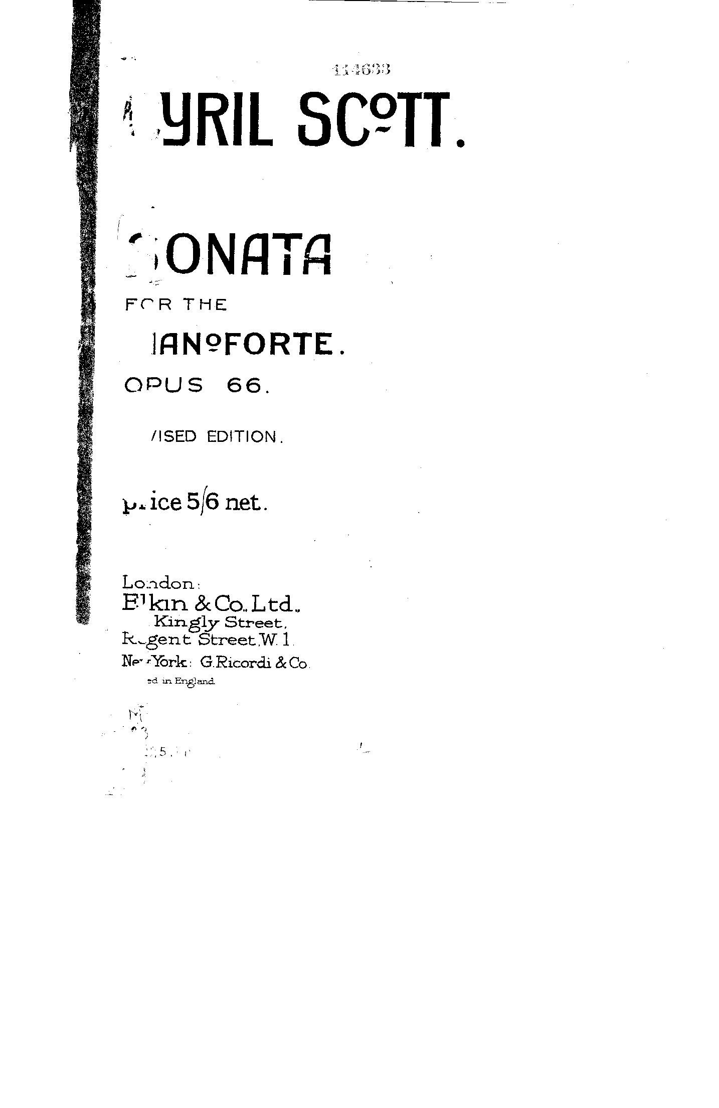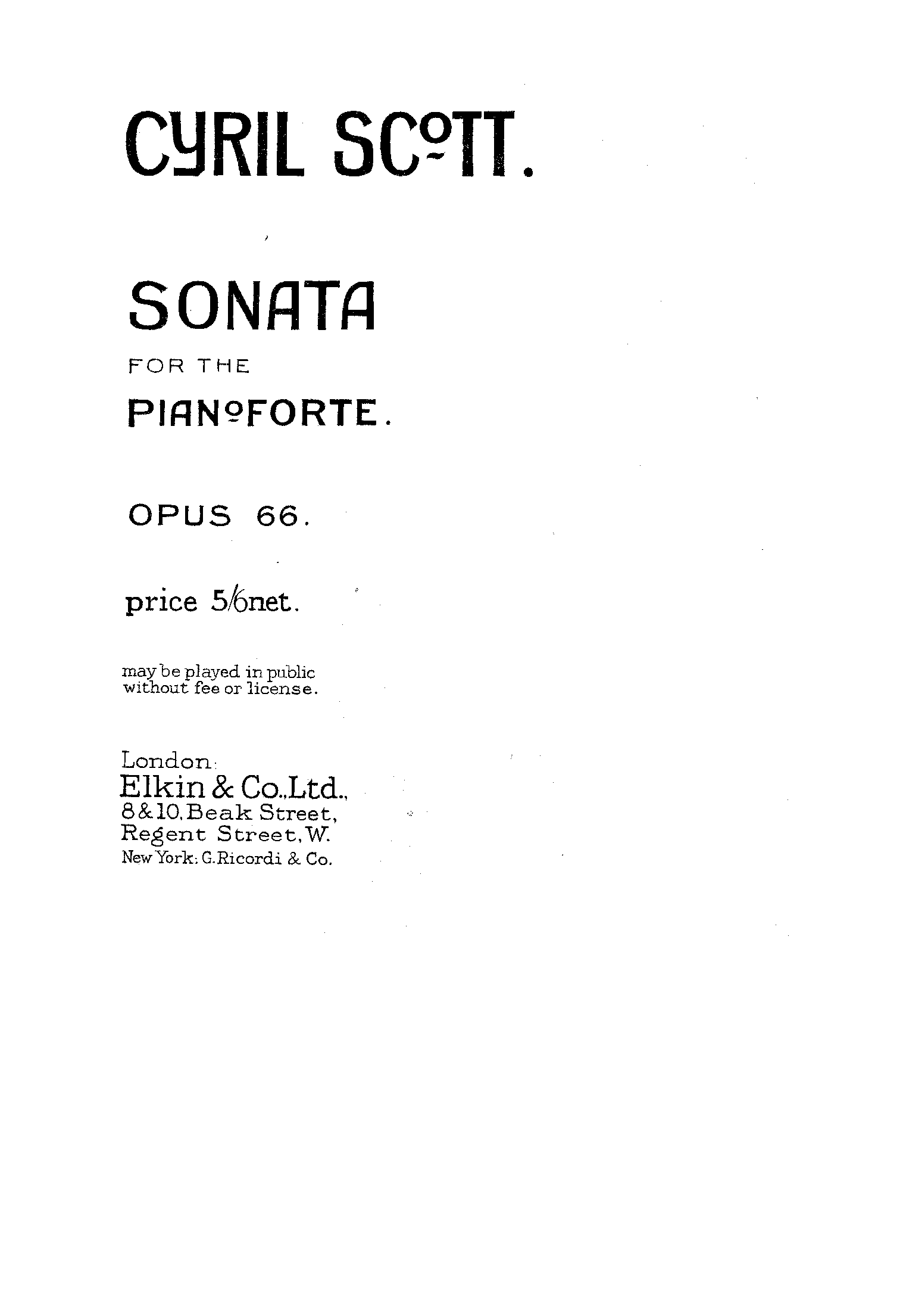 | First Performance. | 1909-05-17 — London, Bechstein Hall: Cyril Scott (piano) |