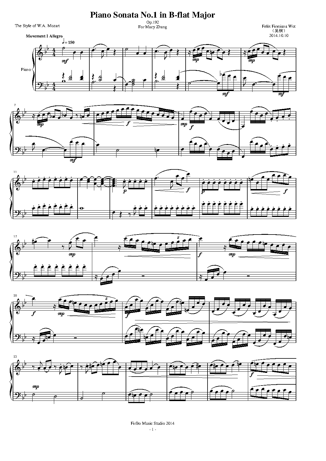 | Work Title | 降B大调第一钢琴奏鸣曲 |