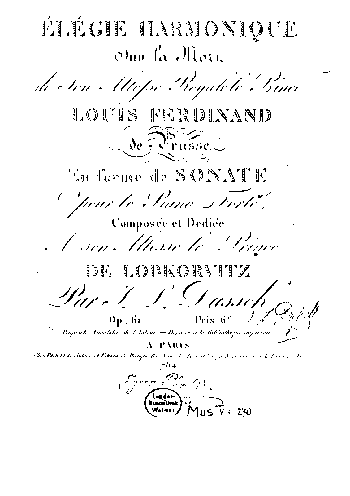 Elégie Harmonique sur la mort de son Altesse Royale le Prince Louis Ferdinand de Prusse