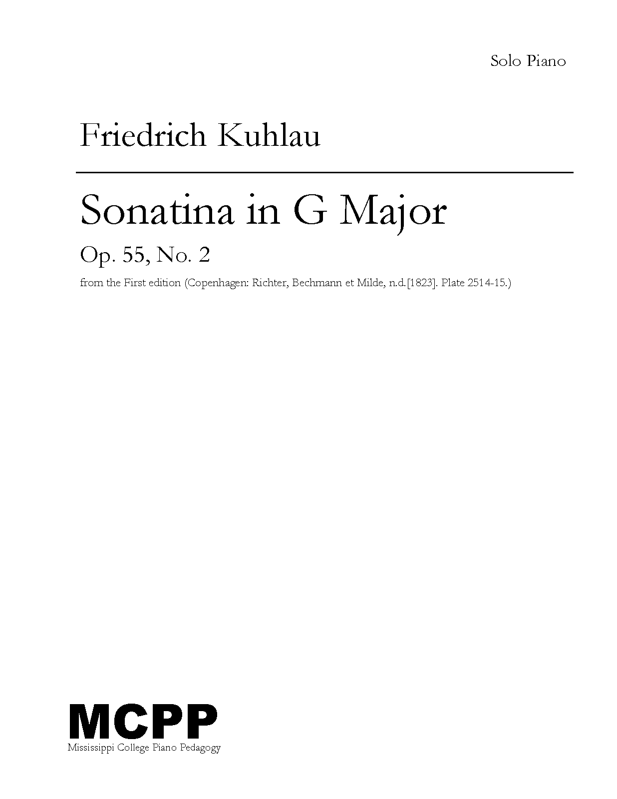 | First Publication. | 1823 in 6 Sonatinas, Op.55 (No.2) |