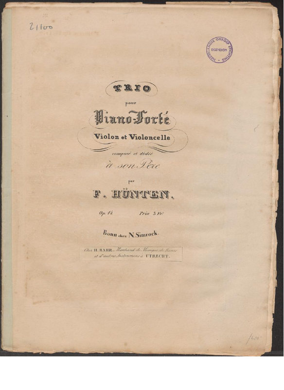at least two more trios followed (Trio no.3, Op.172 pub. in 1850.) Hünten was up to at least Op.32 by 1834, but published in 1834 or earlier.