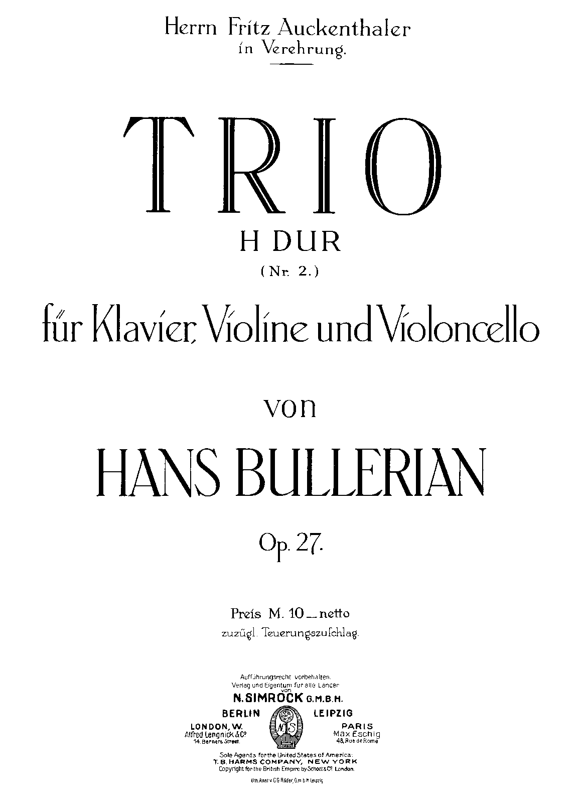 Trio H dur (Nr. 2) für Klavier, Violine und Violoncello